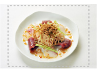 イタリア料理のひとつで、生の牛肉や魚介類を薄切りにし、オリーブオイルやレモン汁などをかけたり、チーズを薄切りにしてのせた料理です。「ヴィットーレ・カルパッチョ」という画家の名前からとったものといわれています。イタリアの有名なお店の創業者が、画家の絵画の配色がお料理と似ているということで「カルパッチョ」と名付けたそうです。